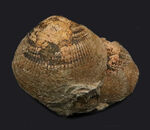ご覧のとおり、殻表面には放射状に走る細かな肋が明瞭に残っており、殻形はほぼ左右対称です。大ぶりで厚みがあり、ずっしりとした重みを感じさせます。グリキメデスはその頑丈さゆえに、化石として良好に保存されやすい貝です。
