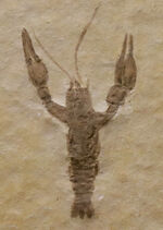 こちらは、世界的な化石の名産地、ドイツ・ゾルンホーフェンの白い石灰岩から採集された、古代のロブスターの仲間、エリィマです。エリィマは、約1億5千万年前のラグーン(礁湖)に生息していたとされ、現在のザリガニやロブスターの祖先的な存在と考えられています。