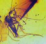 昆虫が自然な姿勢のまま保存されています。通常、虫の化石は残りにくく、保存されても薄く扁平な印象化石になることがほとんどです。しかし琥珀では、このように立体感を保ったまま保存されます。当時の虫が現生種と大きく変わらないことに、驚かされます。