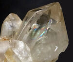 透明感のある結晶内部には、角度によって虹色の光が浮かび上がります。これは内部クラックによる干渉光で、天然水晶ならではの現象です。