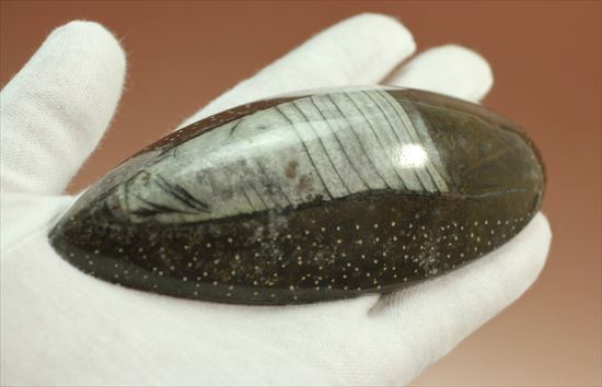 非常に高品位のオルソセラスです。オルソセラスは和語では、直角石(ちょっかくがい、ちょっかくせき)と言います。