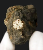 100円硬貨との比較です。明瞭な花びら状の結晶が美しく残っており、和の情緒を感じさせる佇まいが素敵です。桜石は古くから珍重され、地域によっては「印石(しるしいし)」とも呼ばれ、信仰や鑑賞の対象となってきました。日本由来の美しい石をあなたのデスクに迎えてみませんか?