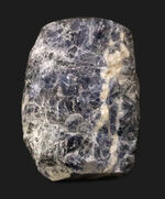 こちらは、ナトリウム含有量の多さに由来して命名されたソーダライトです。落ち着いた地色を縦に切り裂くように走る白い筋は、方解石(カルサイト)や霞石(ネフェリン)によるものです。