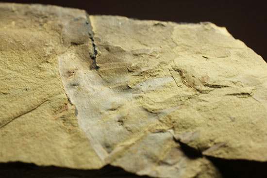 この板状化石は一体なんでしょう??中央の白く見える部分が化石です。