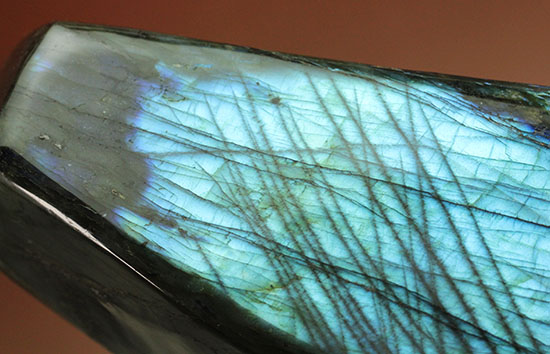 斜長石は成分によって、ラブラドライト(ラブラド長石)、オリゴクレース、アンデシン、バイトウナイト、アノーサイトなど、呼称が異なりますが、その中でも、ラブラドライト(ラブラド長石)は、青色に輝き、かつイリデッセンス(iridescence)を有することから、準宝石(半貴石)として扱われています。