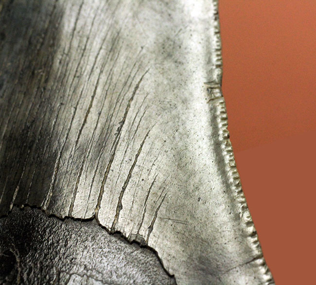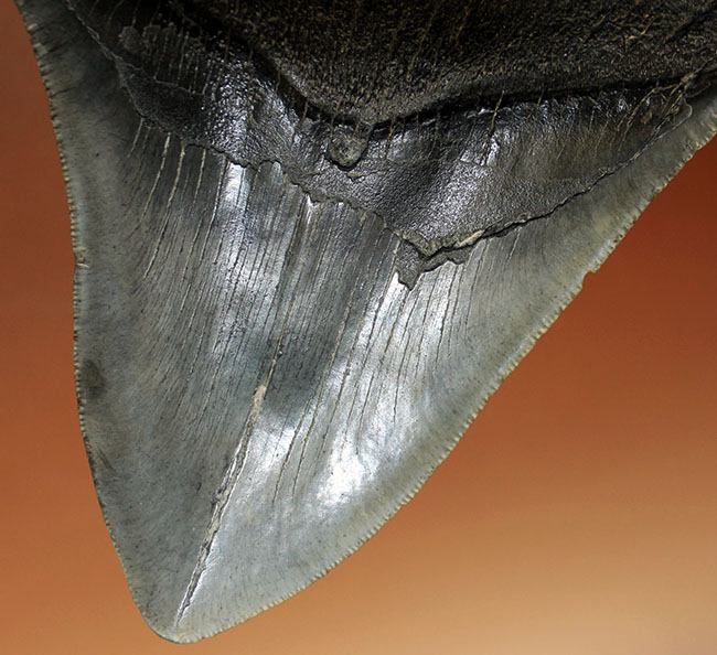 | 学名 | 長い方のカーブに沿って15センチという、メガロドン(Carcharodon megalodon)の歯化石のなかでも特大と申し上げて良い、立派な標本 |