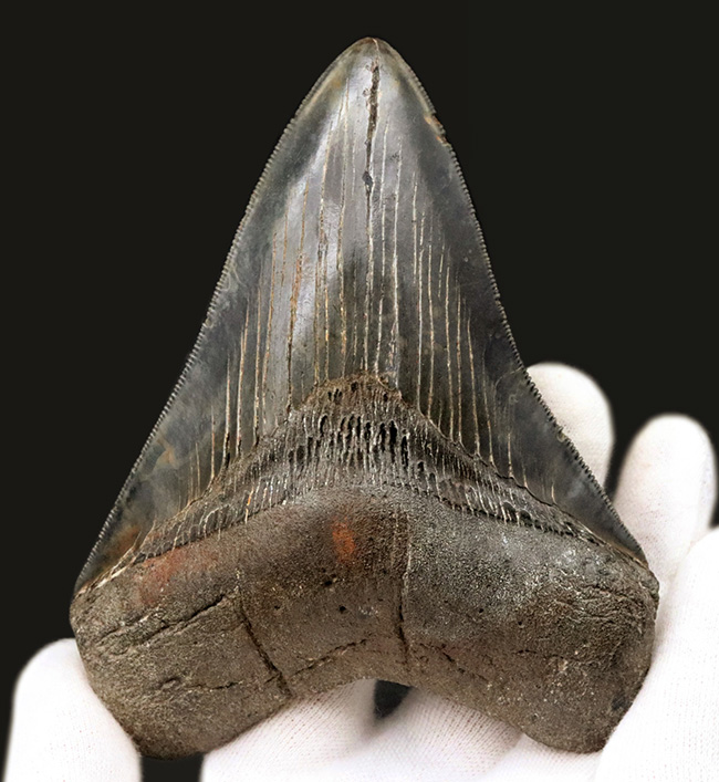 - 100%ナチュラル!まさに王者の佇まい、セレーション、エナメル質、サイズ、シェイプ、どれをとっても、一級のコレクショングレードのメガロドン(Carcharocles megalodon)の歯化石