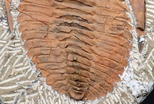 体節と尾板のセクション。尾板が非常に小さいのも最初期の三葉虫にほぼ共通する特徴ですね。