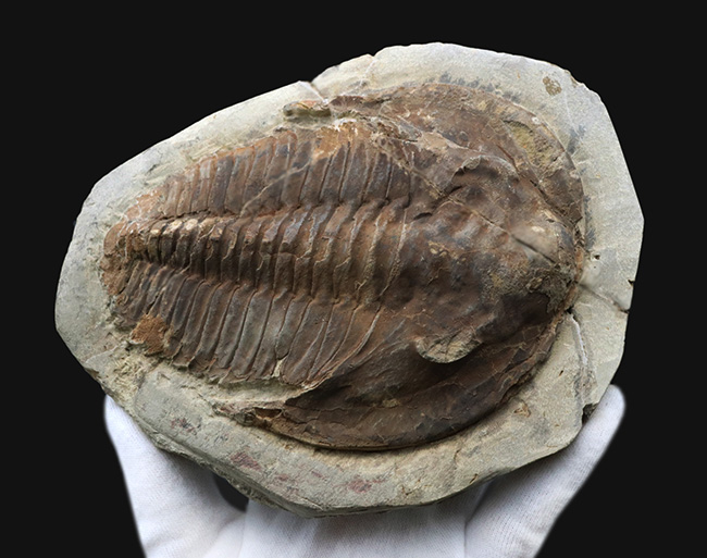 実は三葉虫は初期の頃(カンブリア紀)のほうが体躯が大きな種が多いのです。カンブロパラスもその一つで、こちらの個体は13センチを超えます。