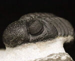 本標本は、モロッコ南東部アンチアトラス山脈のジェベル・ムラキブ産、デボン紀の地層から採集された三葉虫ペディノパリオプスの上質個体です。とりわけ複眼の保存状態が素晴らしく、極小レンズが一つ一つ明瞭に確認できます。