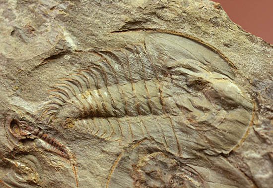 パエデウミアスはカンブリア紀中期には生息していたことが分かっています。その意味では最も原始的な三葉虫の一つで、あのアノマロカリス等と同じ時代を生きていた三葉虫ということができます。本標本は、それよりやや新しいオルドビス紀の標本です。