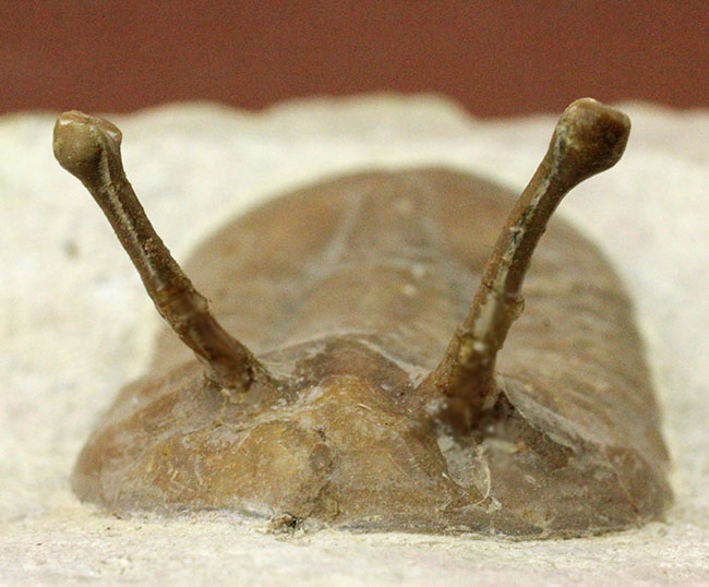 カタツムリのごとき、非常に長い目。三葉虫全般に言えることですが、目が素晴らしく発達しています。これは一説によると、透明度の低い水中で天敵の攻撃をいち早く回避するためだったとか。