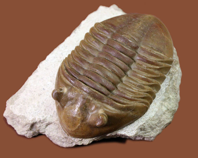 こちらはオルドビス紀を代表する三葉虫、ロシア産のアサフス・レピドゥルス(Asaphus lepidurus)です。非常によくまとまった教科書的な個体です。