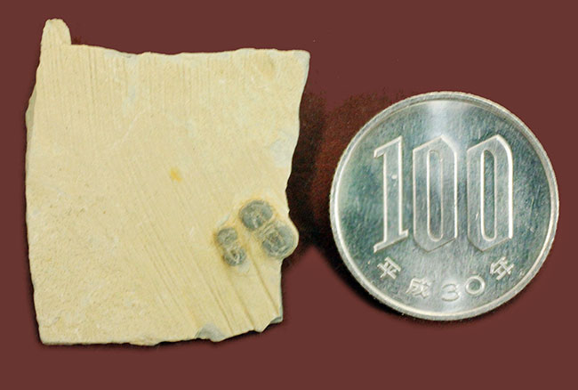 100円玉との比較。アグノスタス目三葉虫のご紹介でした。