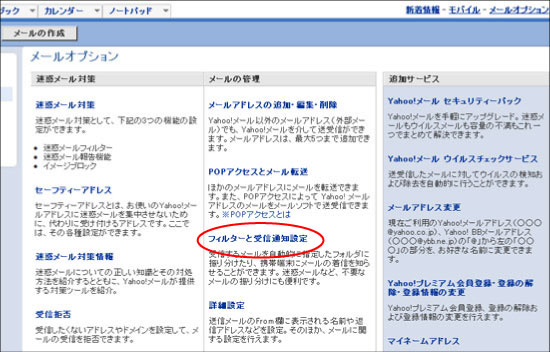 ヤフーメール以外のメールにもこのような機能があります。