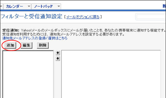 ②「フィルターと受信通知設定」ボタンをクリック。
