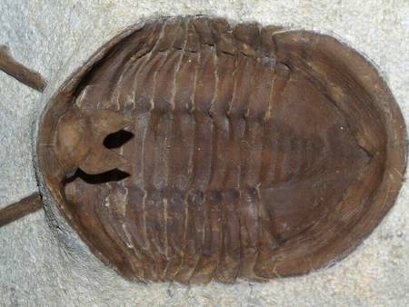 とげです。三葉虫の肢はお腹部分にあったと考えられますが、内臓やお腹同様溶けてなくなり化石としては残りません。