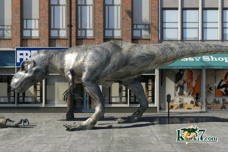 検証していて気づいたことだが、先に一つの結論を述べてしまおう。ティラノサウルス・レックスの前で転んではいけない。論より証拠。この画像をご覧いただきたい。